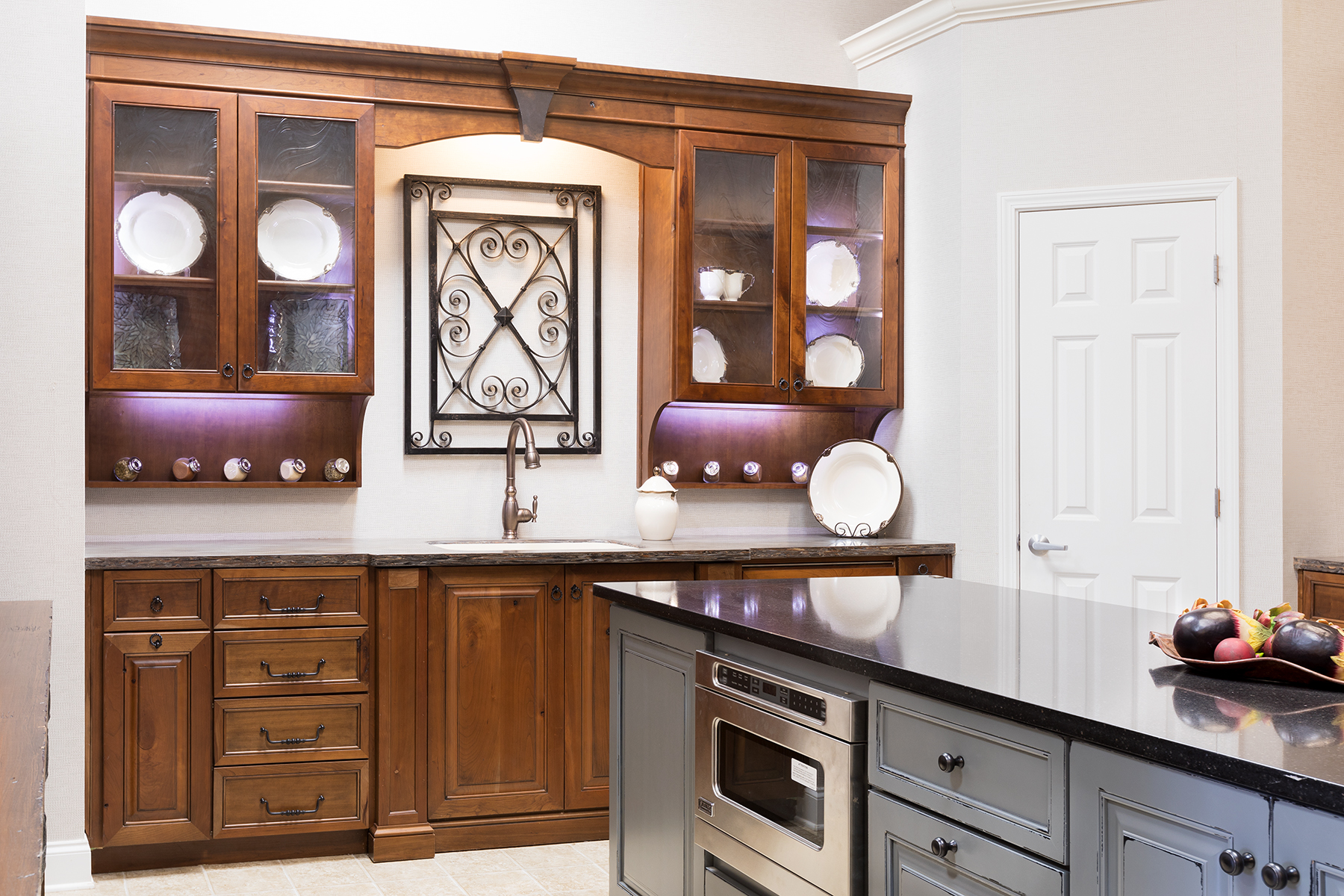 Cherry kitchen cabinets are timeless and beautiful. Cherry wood is moderately heavy, hard, and strong, and it also machines and sands to glass-like smoothness. Because of this, Cherry finishes beautifully. The heartwood in Cherry is red in color, and the sapwood is light pink.