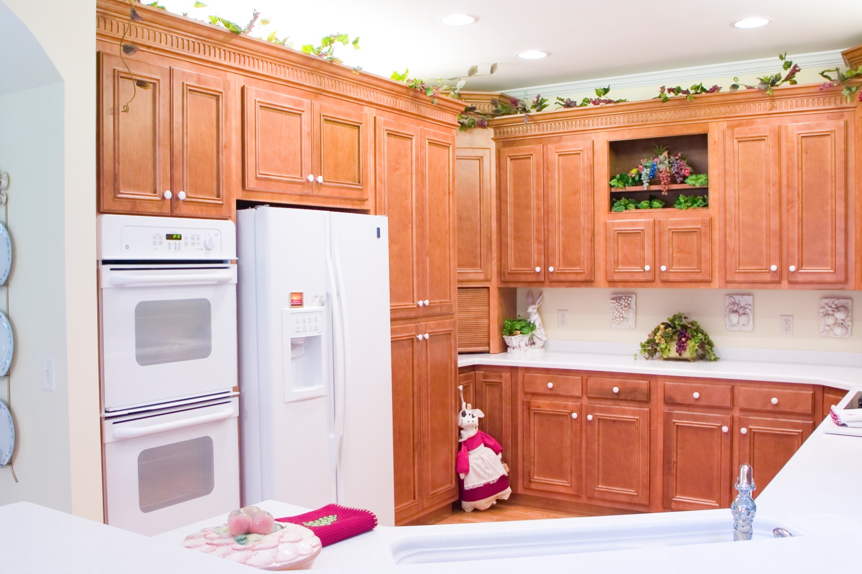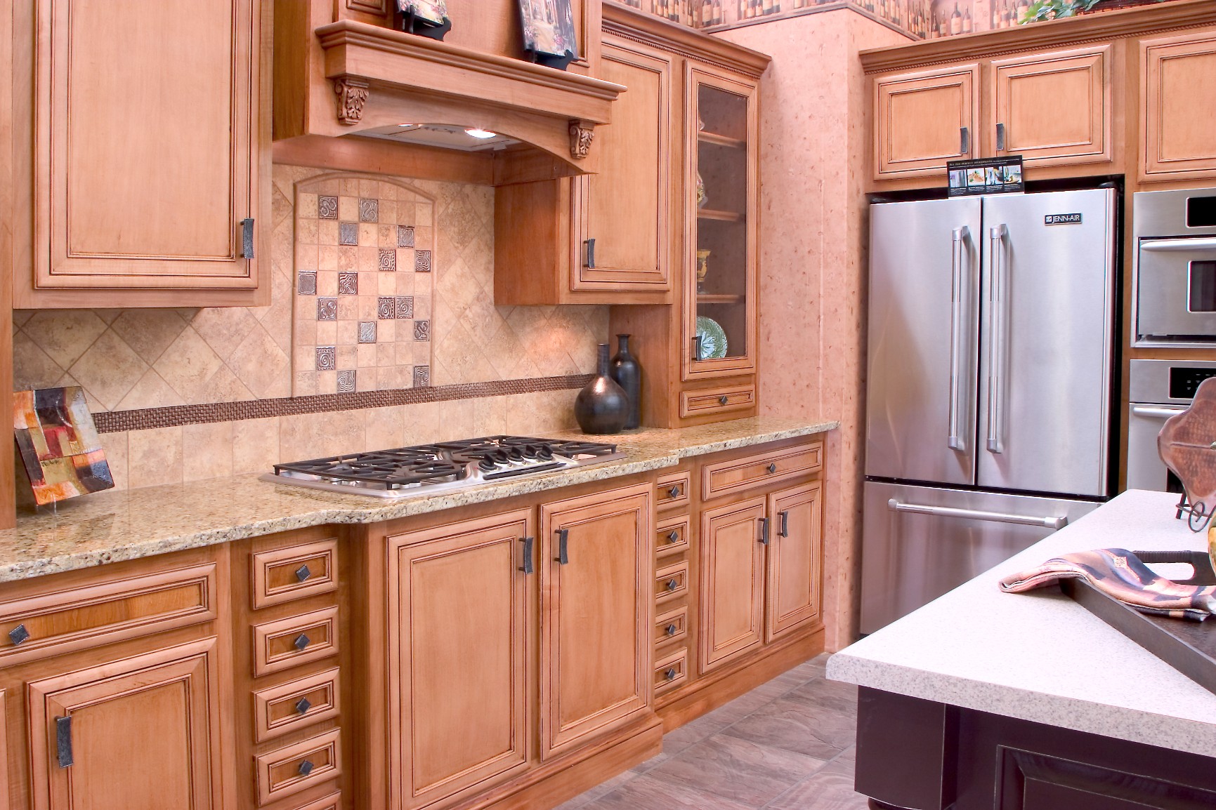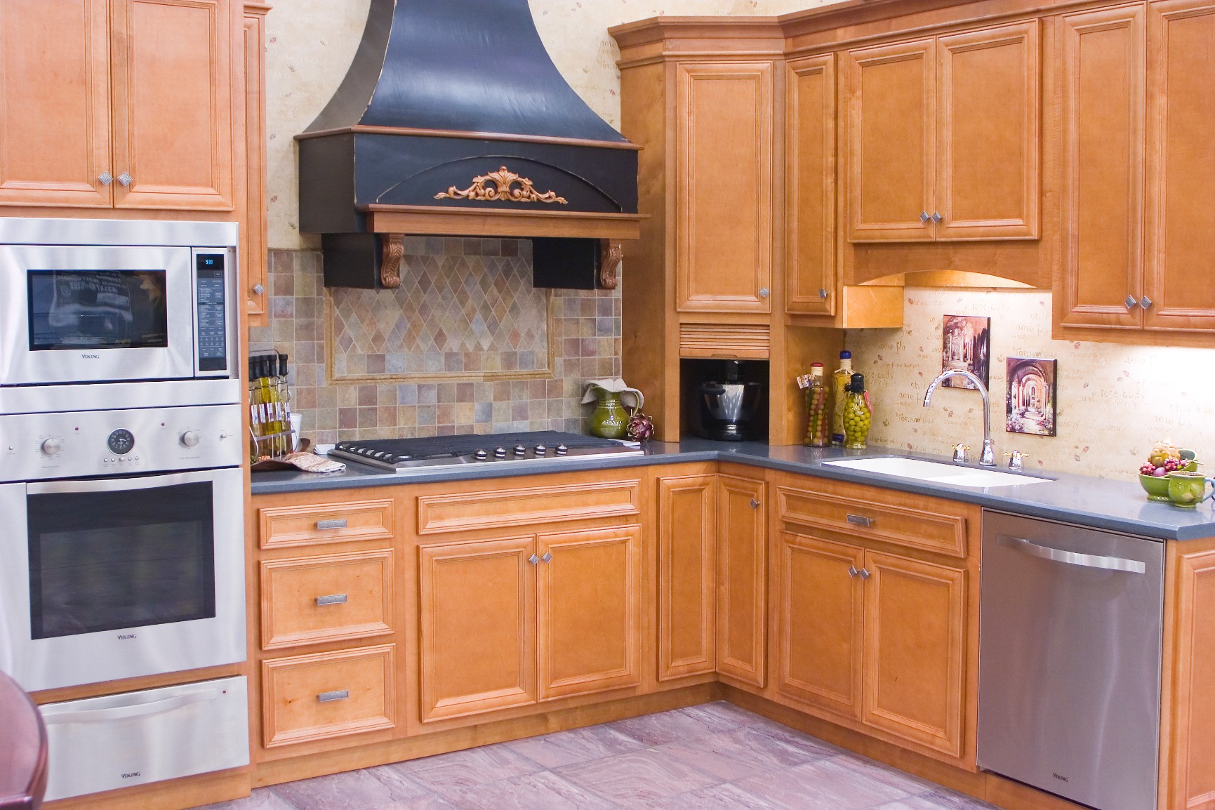 Maple kitchen cabinets are desired for the unique characteristics of this hardwood. The smooth, even grain has little color variation. A glaze or other finish can bring out the beauty of this wood and make your kitchen a delight.