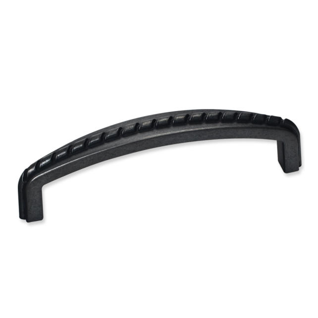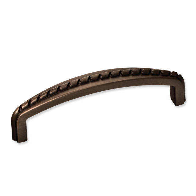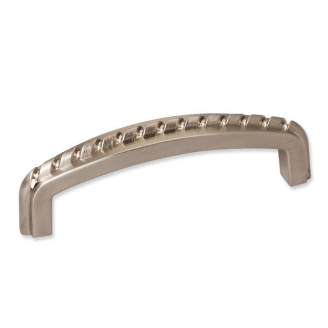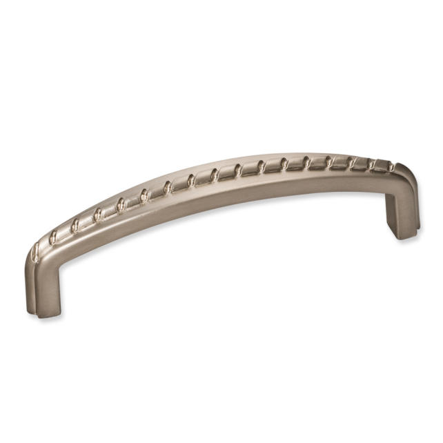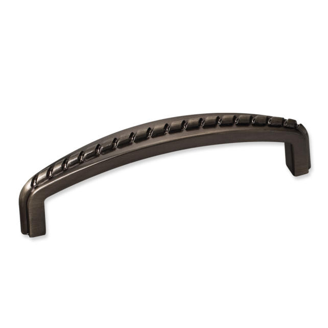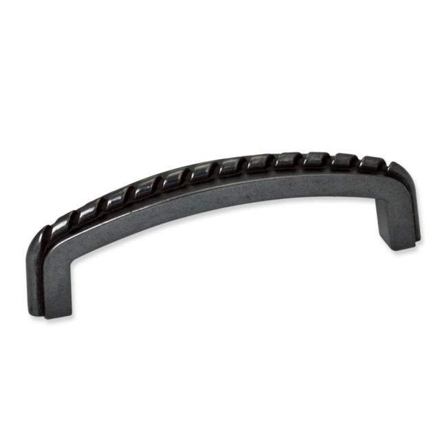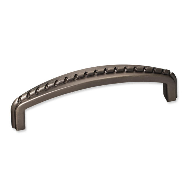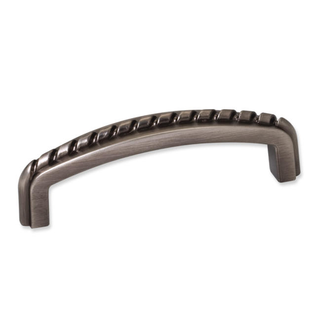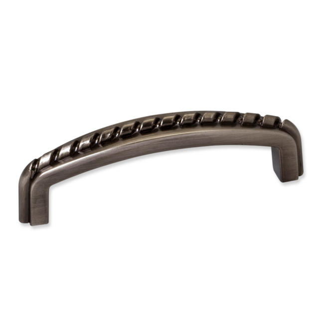 4-1/8" Overall Length Zinc Cabinet Pull with Rope Detail. Holes are 96mm center-to-center. Packaged with two 8/32" x 1" screws.