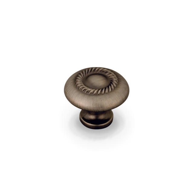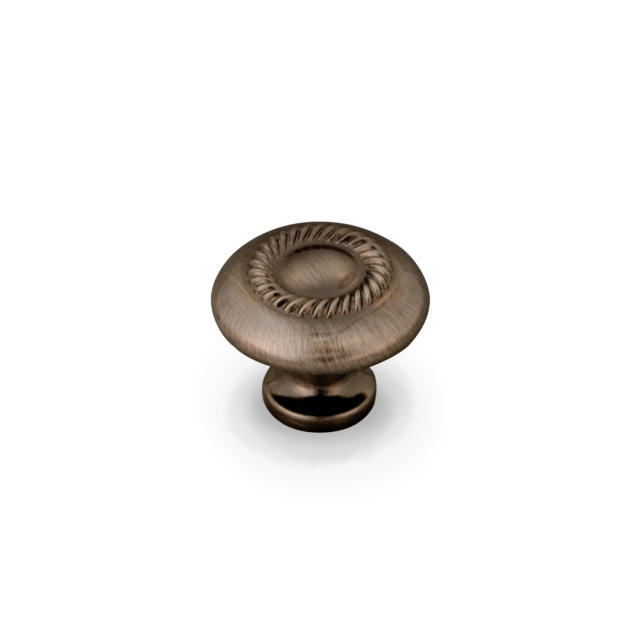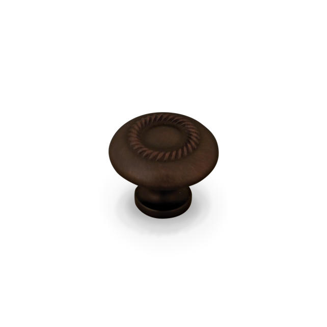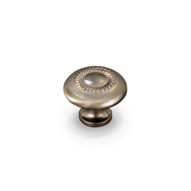 1-1/4" Diameter Zinc Die Cast Cabinet Knob with Rope Detail. Packaged with one 8/32" x 1" screw.