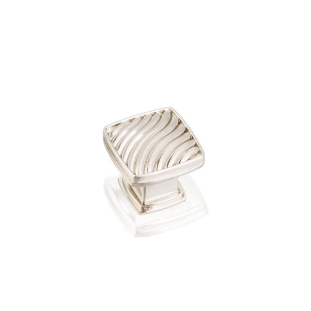 1-1/4" Zinc Diecast Waved Square Cabinet Knob. Packaged with one 8/32" x 1" screw.