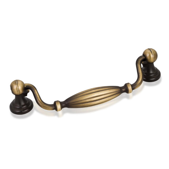 5-7/8" Overall Length Glenmore Cabinet Pull (drawer handle) with two Backplates. Holes are 128mm center-to-center. Packaged with two 8/32" x 1" screws.