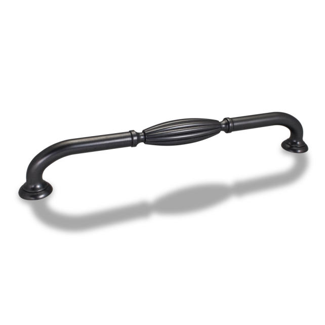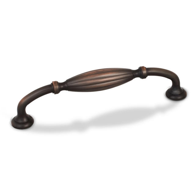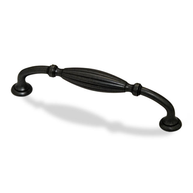 5-3/4" Overall Length Ribbed Cabinet Pull. Holes are 128mm center-to-center. Packaged with two 8/32" x 1" screws.