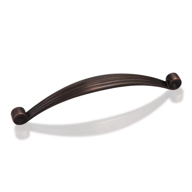 6-7/8" Overall Length Zinc Die Cast Palm Leaf Cabinet Pull. Holes are 160mm center-to-center. Packaged with two 8/32" X 1" screws. U.S. Patent D558,140