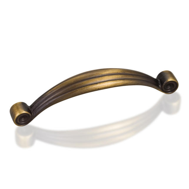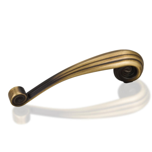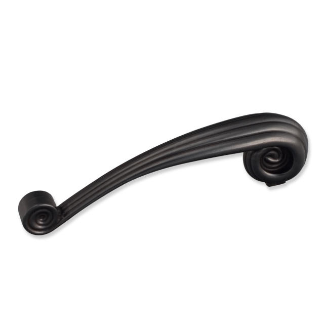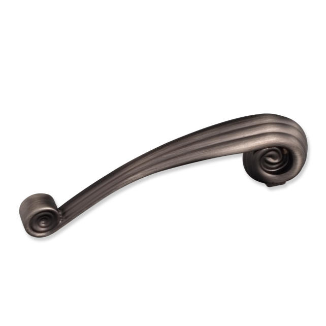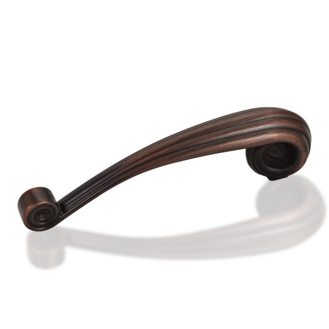 4-3/4" Overall Length Zinc Die Cast Vertical Palm Leaf Cabinet Pull. Holes are 96mm center-to-center. Packaged with two 8/32" X 1" screws. U.S. Patent D558,141