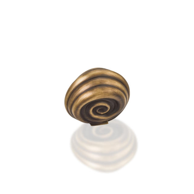 1-3/8" Overall Length Zinc Die Cast Palm Leaf Cabinet Knob. Packaged with one 8/32" x 1-1/8" screw. U.S. Patent D558,139