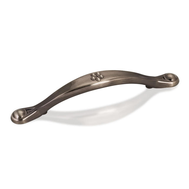 6" Overall Length Zinc Die Cast Cabinet Pull (drawer handle) with teardrop detail. Holes are 96mm center-to-center. Packaged with two 8/32" X 1" screws. U.S. Patent D570,186