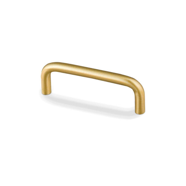 4-1/8" Overall Length Solid Brass Wire Cabinet Pull. Holes are 96mm center-to-center. Packaged with two 8/32" x 1" screws.