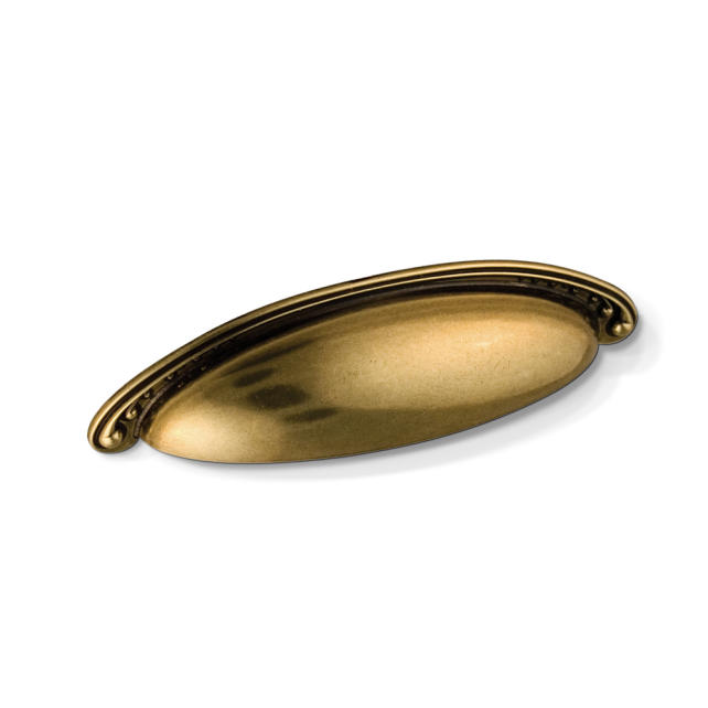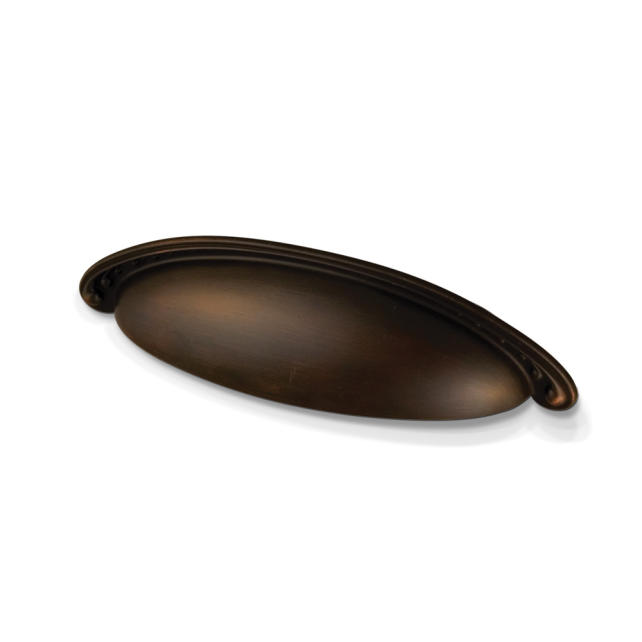 5-3/4" Overall Length Zinc Die Cast Nouveau Cup Cabinet Pull. Holes are 96mm center-to-center. Packaged with two 8/32" x 1" screws.
